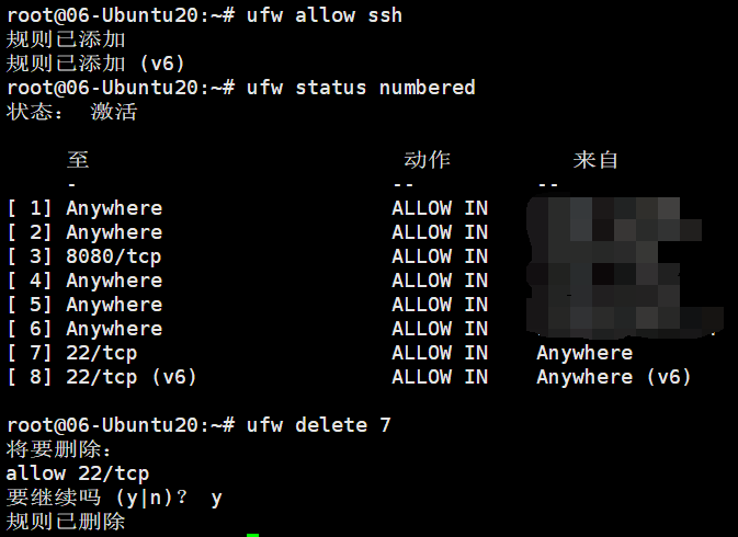 #永久删除开放本机的TCP22端口,以下两条命令均可